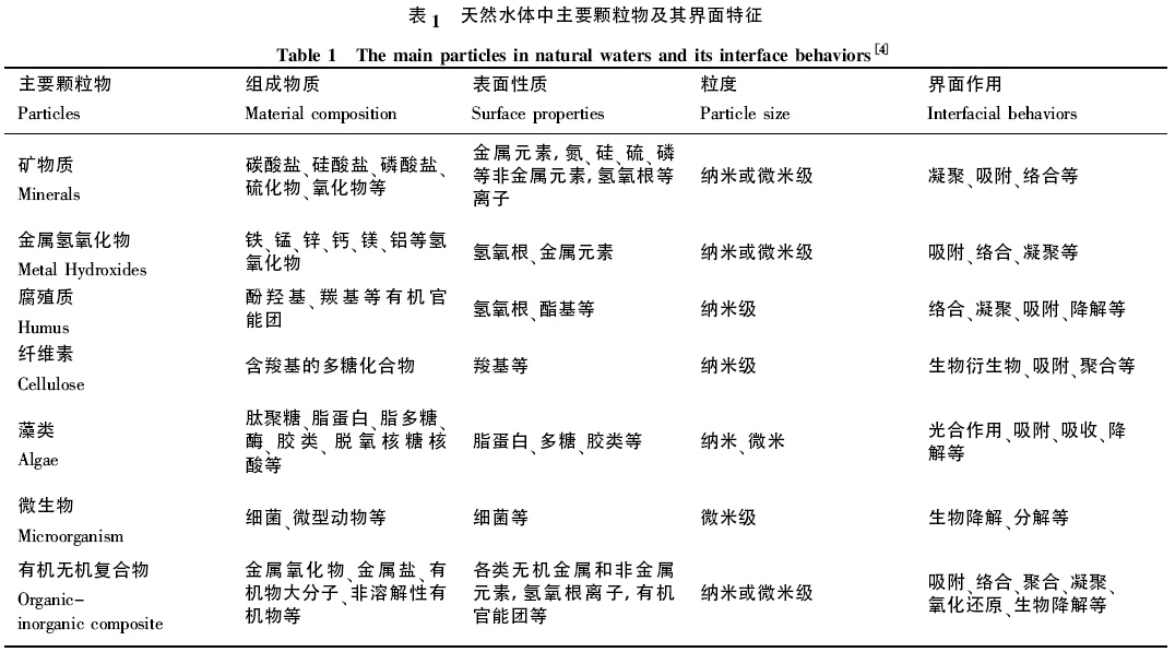 科學(xué)家等對天然水體中主要顆粒物及其界面特征進(jìn)行了總結(jié):